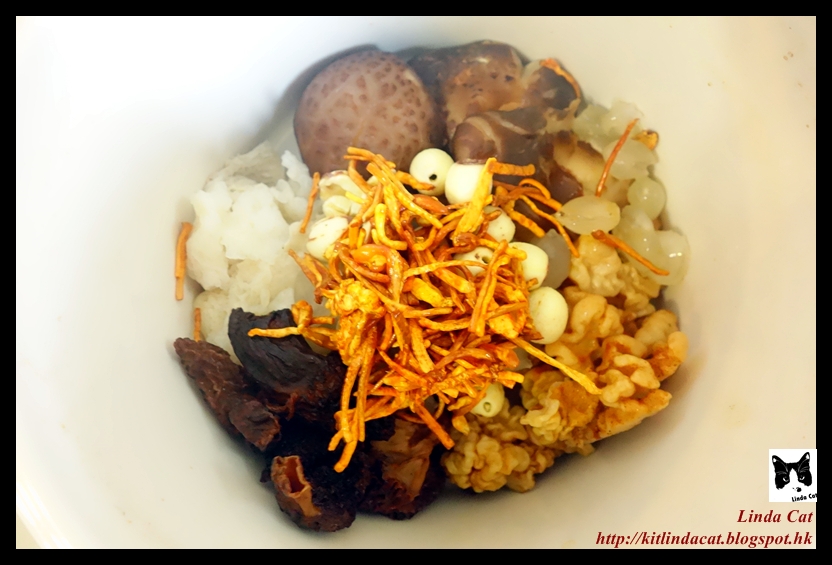 1. 黃耳、花菇發泡一日;雪蓮子浸泡 6 小時;羊肚菌、竹笙、蟲草花浸 1 小時,備用。